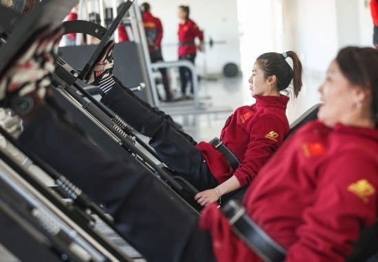 2月29日,鞍鋼集團(tuán)女子拔河隊(duì)隊(duì)員李夢梅在進(jìn)行力量訓(xùn)練。新華社記者 龍雷 攝