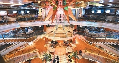 遠(yuǎn)觀“愛達(dá)·魔都號”,層疊密布的艙室和舷窗能承載5246人;走進(jìn)船體內(nèi)部,高達(dá)16層、超過4萬平方米的生活?yuàn)蕵穮^(qū)域內(nèi),劇場、泳池、健身房、餐廳、畫廊等娛樂設(shè)施應(yīng)有盡有,儼然是一座“移動(dòng)的海上城市”。