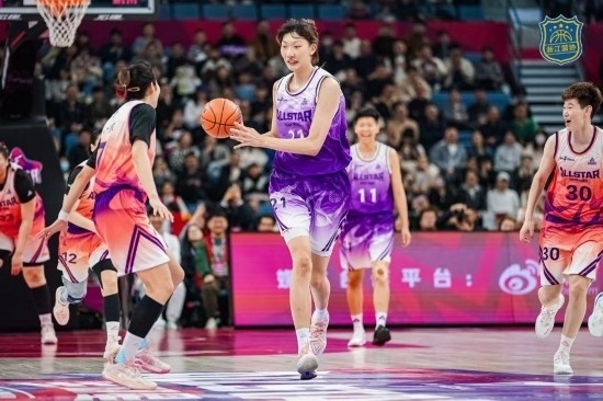 與往屆不同,今年全明星正賽開場雙方球員就將“娛樂屬性”拉滿,讓球迷欣賞到平時在正式比賽中看不到的場面。北區(qū)隊(duì)先是安排了武桐桐背打韓旭的懸殊錯位,而后劉禹彤、張茹和潘臻琦將李緣高高舉起助其完成扣籃。南區(qū)隊(duì)也“不甘示弱”,李夢的運(yùn)球引起陣陣歡呼,韓旭則在無人防守的情況下完成一記雙手扣籃,將現(xiàn)場氣氛烘托至高潮。