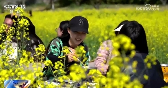 在宜昌市夷陵區(qū),這片油菜花田依山傍水,村居散落其中,構(gòu)成一幅優(yōu)美的田園畫卷。中午時(shí)分,一場(chǎng)小型音樂(lè)會(huì)在油菜花田中拉開帷幕,旋律與花海邂逅,如同大珠小珠落玉盤,叮叮當(dāng)當(dāng),又如泉水叮咚般悅耳。游客置身其間,吃著火鍋、品著咖啡,一切煩擾都被洗滌殆盡。