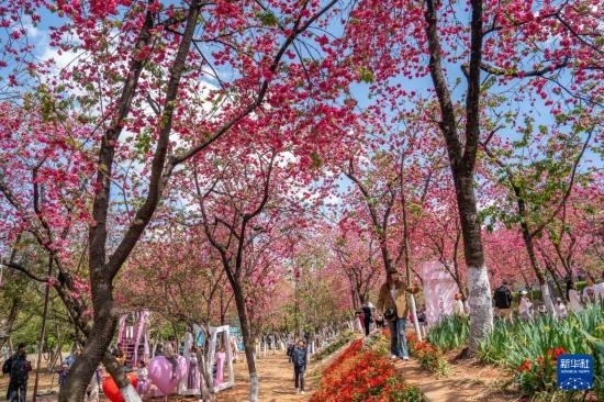 近日,云南昆明圓通山公園的櫻花進(jìn)入盛花期,吸引眾多市民和游客前來觀花賞景,樂享春日時光。