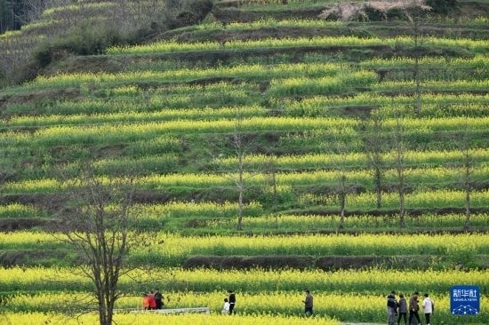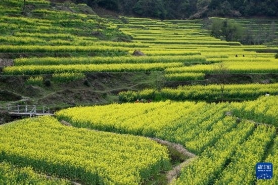 眼下,安徽省黃山市徽州區(qū)呈坎鎮(zhèn)靈山村的梯田油菜迎來盛花期,層層疊疊的梯田上綻放的油菜花猶如金色波浪,吸引各地游客前來賞花踏青。