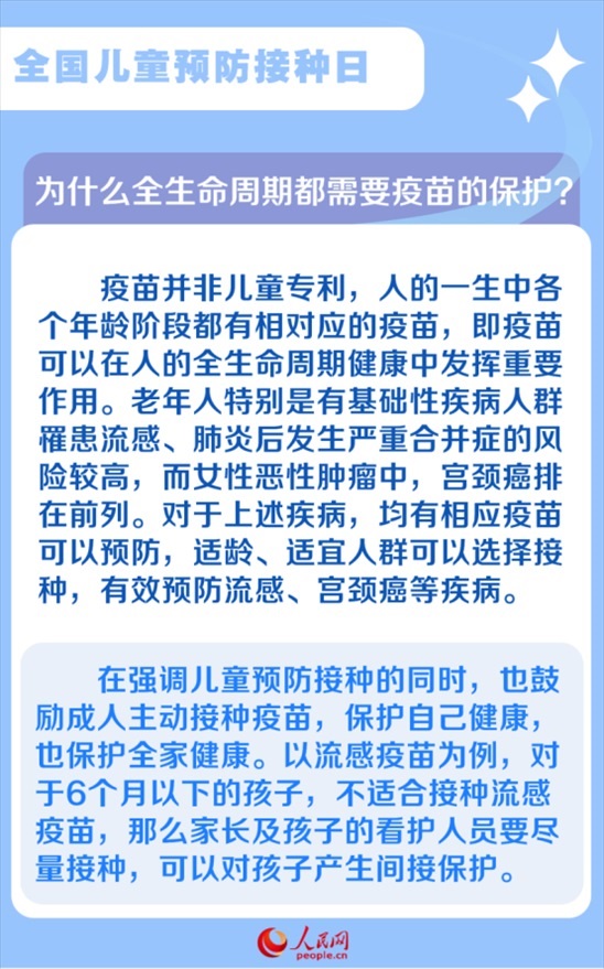 2024年4月25日為我國(guó)第38個(gè)“全國(guó)兒童預(yù)防接種日”,宣傳主題為“共同行動(dòng) 接種疫苗 為全生命周期護(hù)航”。溫州醫(yī)科大學(xué)附屬第二醫(yī)院、育英兒童醫(yī)院兒童預(yù)防接種咨詢門診副主任醫(yī)師余剛在接受采訪時(shí)表示,對(duì)個(gè)人來(lái)說,全生命周期的健康保護(hù)是從接種第一針疫苗開始。