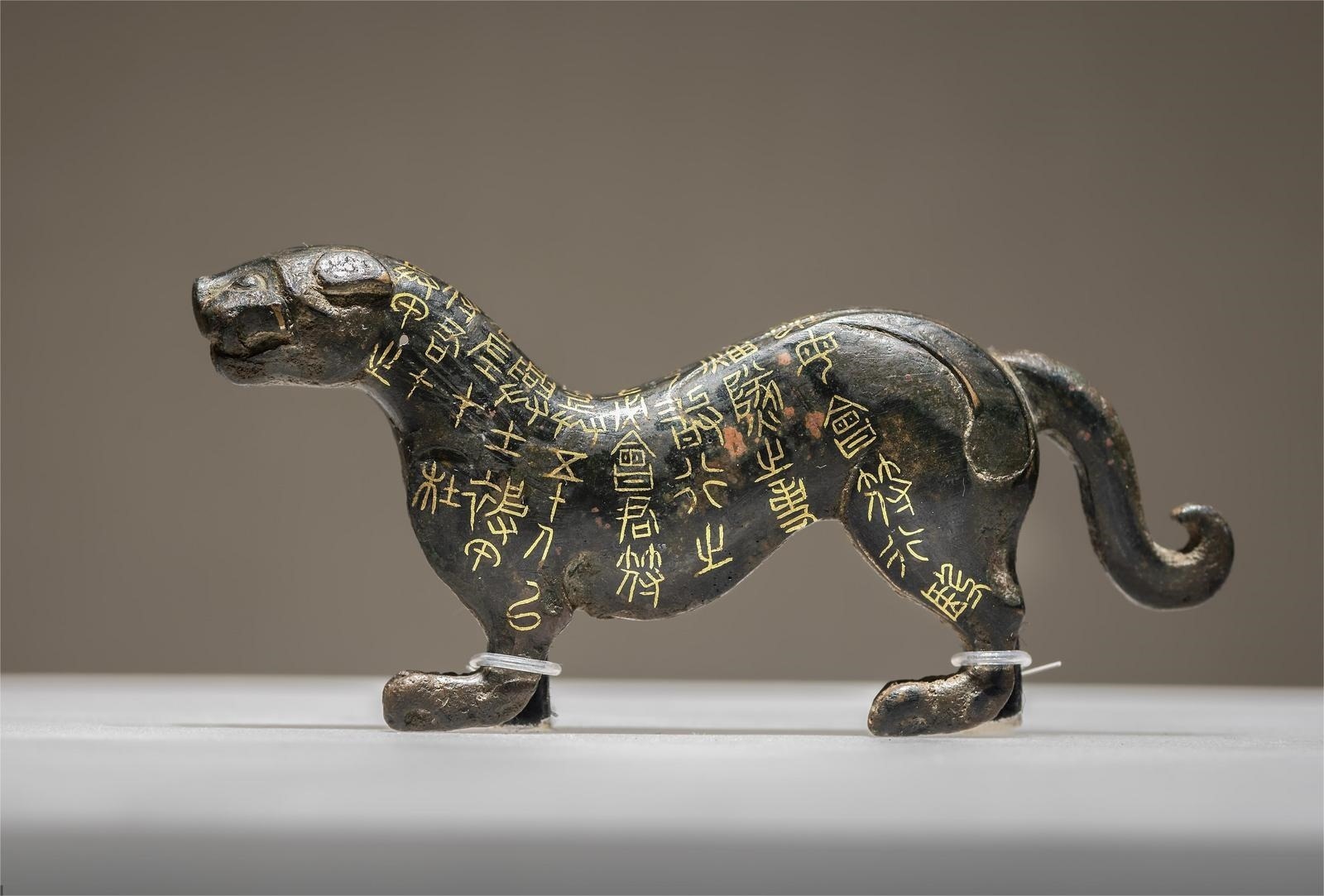 2300年前的戰(zhàn)國錯金杜虎符,讓人穿越歷史,感受戰(zhàn)國時期沙場秋點(diǎn)兵的磅礴氣勢。陜西歷史博物館藏的錯金杜虎符是一只霸氣虎,作行走狀,昂首,尾巴蜷曲。虎符上刻著:“兵甲之符。右在君,左在杜。凡興士被甲,用兵五十人以上,必會君符,乃敢行之……”共9行40字,寫明了虎符的用法和調(diào)兵范圍。使用的時候,虎符必須左右兩半嚴(yán)絲合縫地對合在一起才能起效,這也是“符合”一詞的來歷。