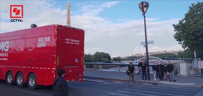 中央廣播電視總臺“中國紅”8K超高清轉播車,歷經(jīng)近2個月的旅程,在當?shù)貢r間7月16日,終于抵達巴黎法蘭西體育場。行駛途中,“中國紅”一路經(jīng)過凱旋門、埃菲爾鐵塔等巴黎地標性建筑,引發(fā)當?shù)孛癖姎g呼贊嘆。