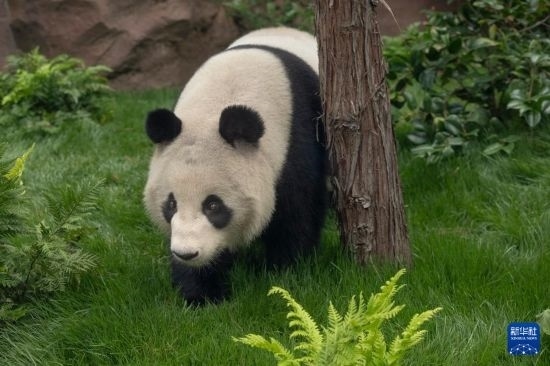 這是美國加利福尼亞州圣迭戈動(dòng)物園7月19日發(fā)布的大熊貓“云川”在動(dòng)物園新家的照片。