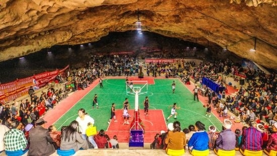 10月5日拍攝的楊楠村洞穴籃球賽比賽現(xiàn)場。(沿河縣委宣傳部供圖)