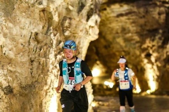 參賽選手在2024探秘貴州·翡翠綏陽亞洲第一長洞雙河洞山地穿越挑戰(zhàn)賽比賽途中。(綏陽縣教體局供圖)