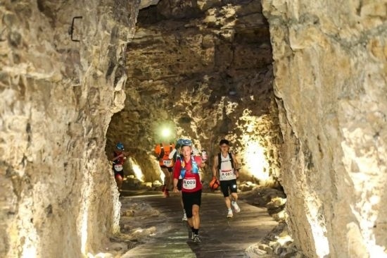 參賽選手進(jìn)入溶洞時必須佩戴頭盔