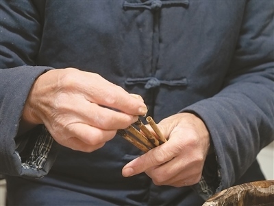 “無論是制作哪一類品種的宣筆,要能實現(xiàn)‘尖、齊、圓、健’均屬不易,需經(jīng)歷選料、水盆、制桿、裝套等多道工序、100多個環(huán)節(jié)?!币灾茥U為例,佘征軍介紹,工人需要先將筆桿磨平,再用工具在筆桿上挖出裝筆頭的洞,這套工藝沒有特定的參數(shù)可參考,全憑工人的手上感覺?!皩W(xué)徒入行,一般3到5年才能完整學(xué)會宣筆制造流程;要想做出一支優(yōu)秀的宣筆,至少10到12年的學(xué)習(xí)實踐;而要想學(xué)‘精’,需要一輩子的時間?!辟苷鬈娬f。
