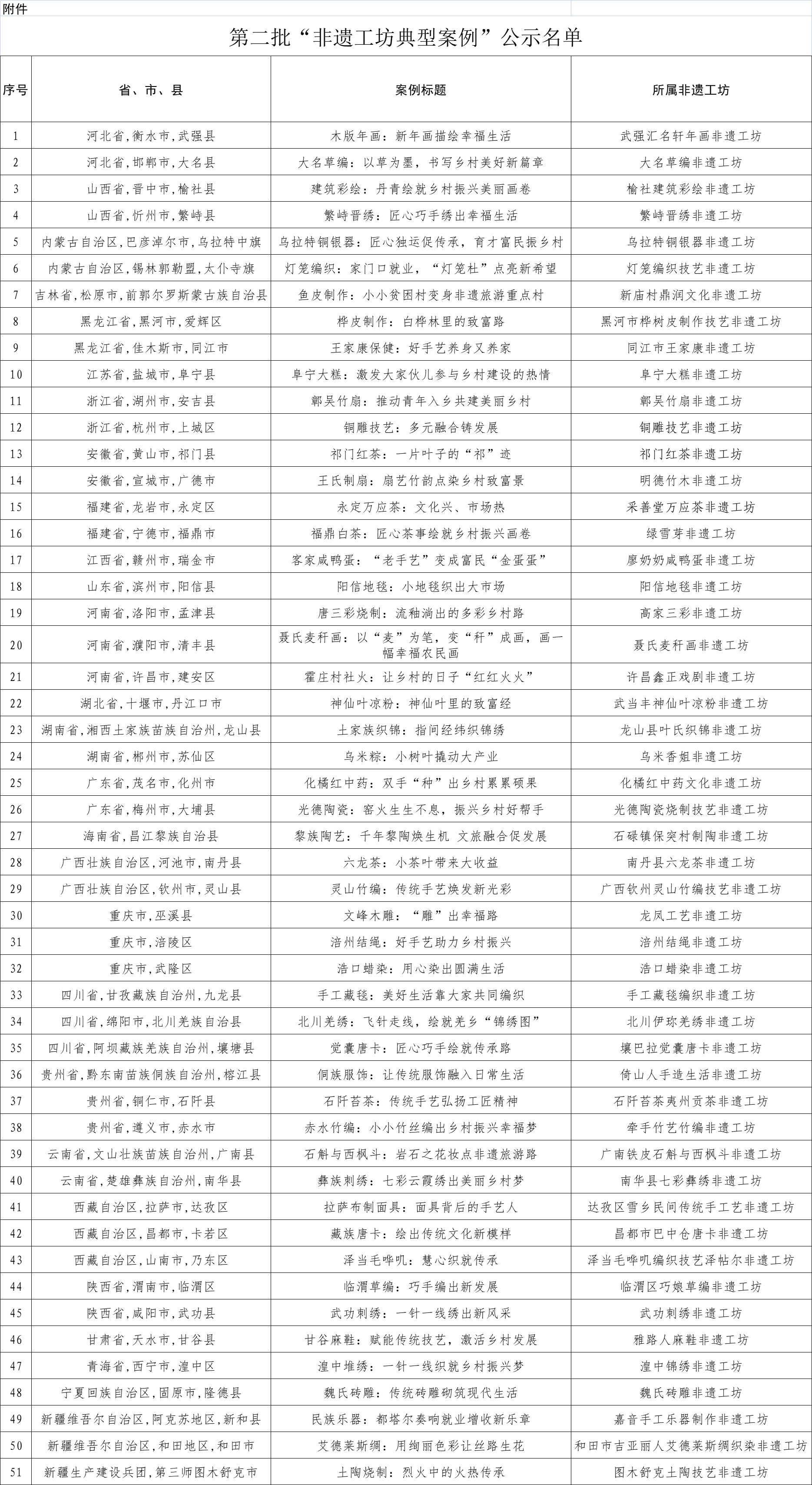 人民網(wǎng)北京3月19日電 (記者楊虞波羅)根據(jù)《文化和旅游部辦公廳 人力資源社會(huì)保障部辦公廳 農(nóng)業(yè)農(nóng)村部辦公廳關(guān)于推薦第二批“非遺工坊典型案例”的通知》,經(jīng)各省推薦和專(zhuān)家評(píng)議,第二批“非遺工坊典型案例”推薦和遴選工作于日前結(jié)束?,F(xiàn)將推薦名單進(jìn)行公示。