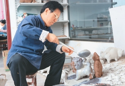 前些年,胡新明大膽嘗試,在泥里加入紙漿、棉花、面糊、糯米汁等,反復(fù)試驗(yàn),研制出“摔不爛”的泥塑;創(chuàng)新泥塑造型,讓各類(lèi)產(chǎn)品推陳出新。