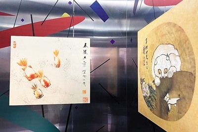 藝術(shù)如何真正進(jìn)入社區(qū)空間,成為居民生活的一部分?“藝術(shù)電梯”計(jì)劃給出了一種城市微更新的可能路徑。2023年,社區(qū)樞紐站與中華藝術(shù)宮(上海美術(shù)館)、上海大學(xué)上海美術(shù)學(xué)院聯(lián)合發(fā)起了“藝術(shù)電梯”計(jì)劃。該計(jì)劃將中華藝術(shù)宮“歷史的星空:二十世紀(jì)前期海派繪畫研究展”中2件虛谷的作品《白貓》《春波魚戲圖》融入小區(qū)電梯。