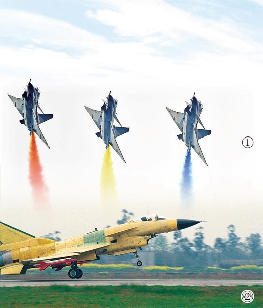 圖①:2016年,殲—10飛機(jī)航展表演。