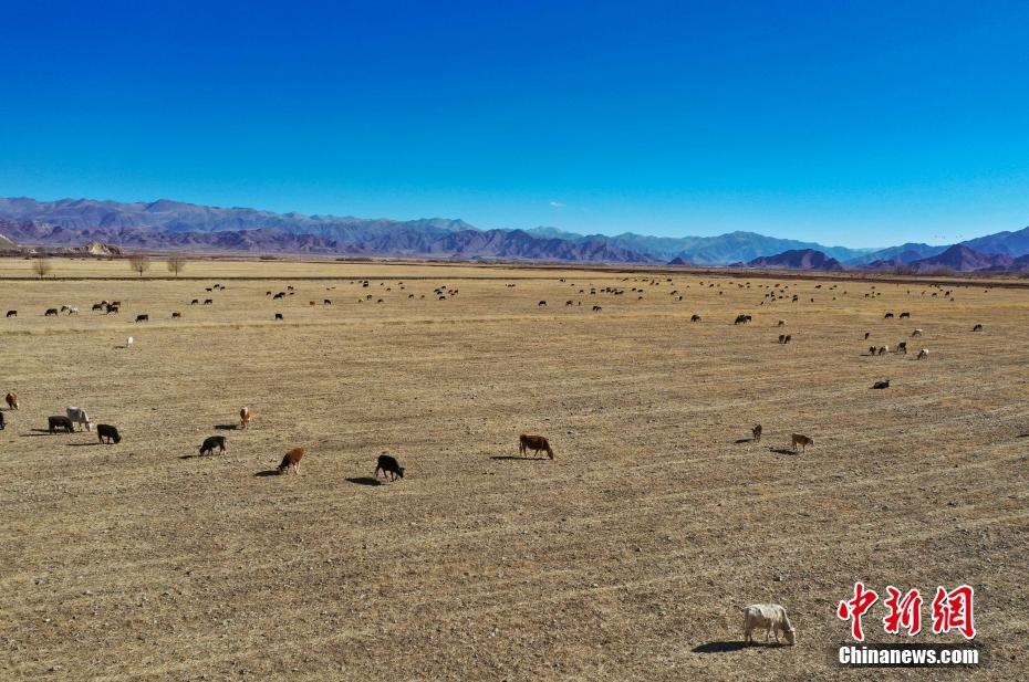 12月20日,西藏自治區(qū)拉薩市林周縣境內的冬日風光(無人機照片)。嚴冬時節(jié),拉薩河谷沿線的草甸、山巒、候鳥、寺廟構成一道獨特的風景線。 中新社記者 貢嘎來松 攝