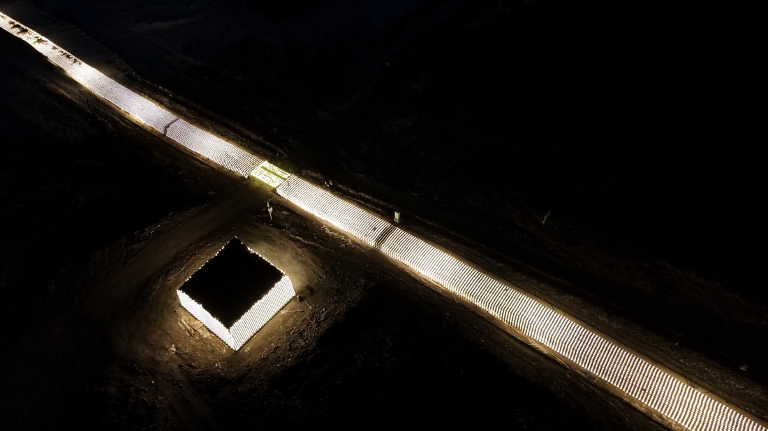 這是崇禮長城景觀展示亮化工程現(xiàn)場的燈帶(12月30日攝)。新華社記者 楊世堯 攝
