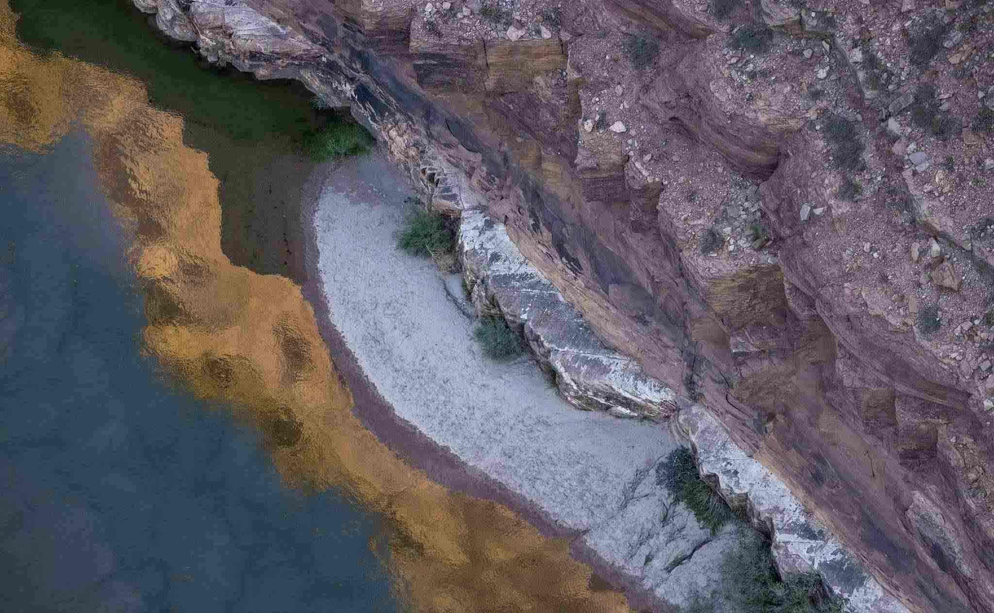 當?shù)貢r間2022年8月31日,美國亞利桑那州大理石峽谷,當沉積物在流經(jīng)鮑威爾湖下游的大理石峽谷時,紅色砂巖懸崖倒映在科羅拉多河中。近幾年,氣候變化導致的干旱使美國第二大水庫鮑威爾湖的水位下降。