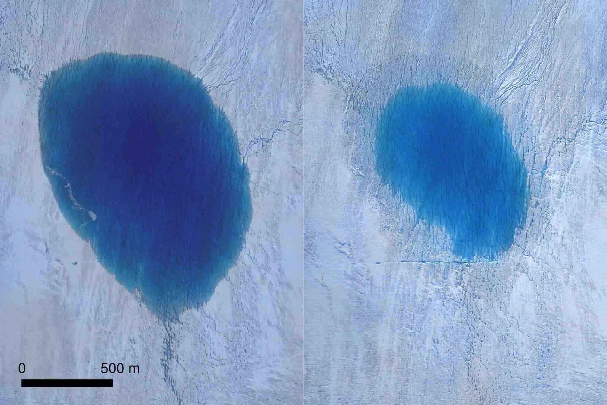 當?shù)貢r間2019年12月2日,格陵蘭島冰蓋上一個由融冰的水形成的湖泊在蓄滿水之后開始快速破裂和排水,由于氣候變化,這種現(xiàn)象越來越頻繁。
