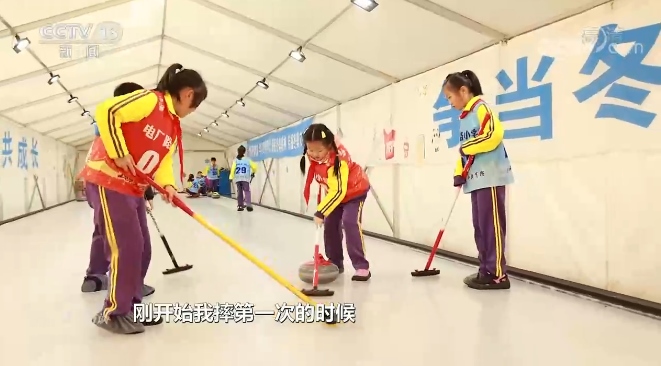 北京市石景山區(qū)電廠路小學(xué)學(xué)生盧佳怡說:“每天早上同學(xué)們都會參加各種各樣的體育項目,我參加的是輪滑,這里還有冰蹴球、雪車、冰球。”