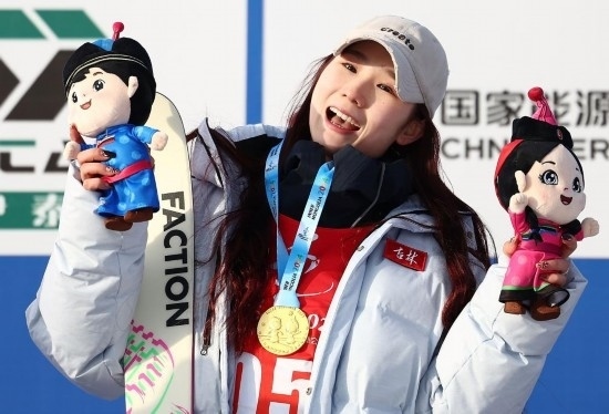 劉夢婷的雪板上有一個“谷”字,她解釋說這是谷愛凌同款定制雪板。“我很喜歡她的風(fēng)格,把她作為我的榜樣,激勵我進步?!?/p>