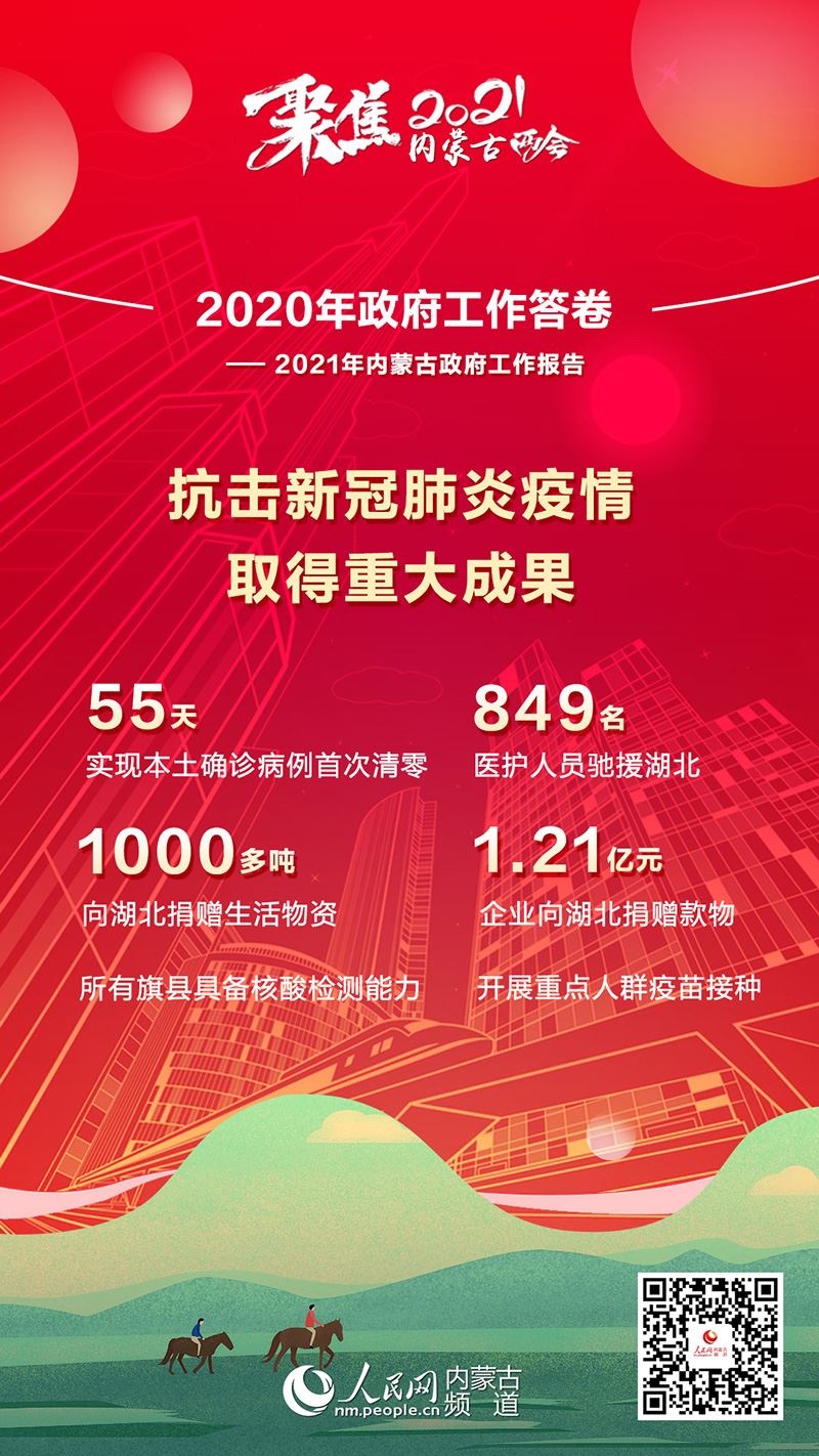 1月26日上午,內(nèi)蒙古自治區(qū)十三屆人大四次會議在內(nèi)蒙古人民會堂開幕。自治區(qū)主席布小林作政府工作報告。2020年是極不平凡的一年,內(nèi)蒙古緊扣全面建成小康社會目標任務,堅持穩(wěn)中求進工作總基調(diào),堅持以人民為中心,科學統(tǒng)籌疫情防控和經(jīng)濟社會發(fā)展,扎實做好“六穩(wěn)”工作,全面落實“六保”任務,全區(qū)經(jīng)濟持續(xù)回穩(wěn),社會大局和諧穩(wěn)定,“十三五”規(guī)劃順利收官。2020年政府工作有哪些亮點?看內(nèi)蒙古書寫這份精彩答卷!