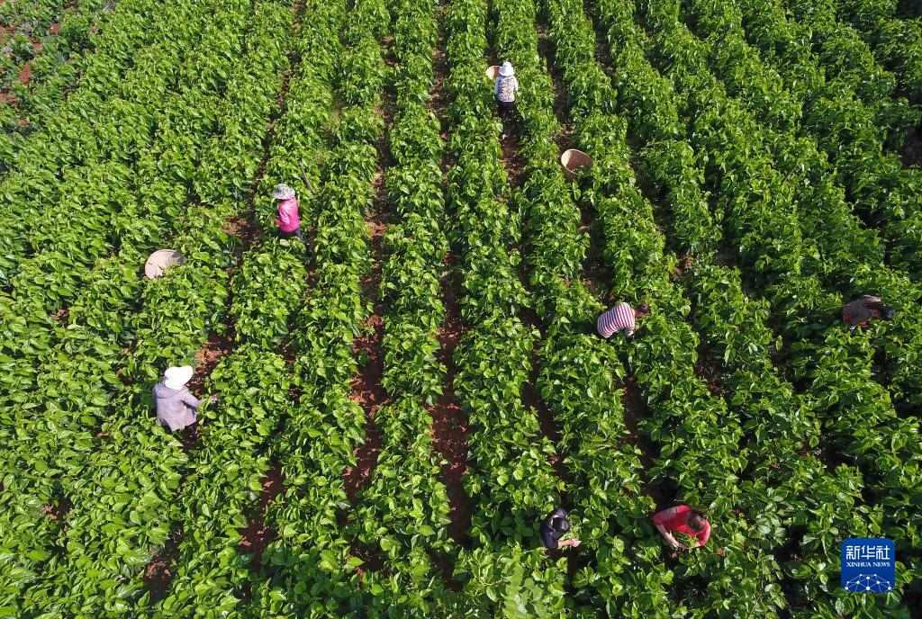 云南尋甸縣金所街道草海子村的農(nóng)婦在采摘蠶桑葉(2020年5月16日攝,無人機(jī)照片)。當(dāng)?shù)卮罅Πl(fā)展蠶桑等特色種養(yǎng)殖和加工產(chǎn)業(yè),帶動(dòng)農(nóng)民脫貧增收致富。新華社記者 楊宗友 攝