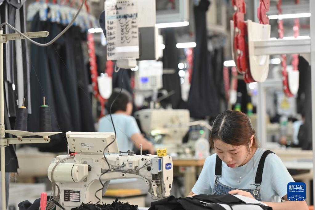 在位于福建省泉州市經(jīng)濟(jì)技術(shù)開發(fā)區(qū)的九牧王西褲智能化生產(chǎn)車間,工人在自動(dòng)化西褲吊掛流水線上作業(yè)(2021年7月30日攝)。近年來,泉州市稅務(wù)部門積極落實(shí)減稅降費(fèi),出臺(tái)一系列穩(wěn)定工業(yè)、扶持外貿(mào)、鼓勵(lì)企業(yè)研發(fā)創(chuàng)新的政策,服務(wù)實(shí)體經(jīng)濟(jì)發(fā)展。新華社記者 宋為偉 攝