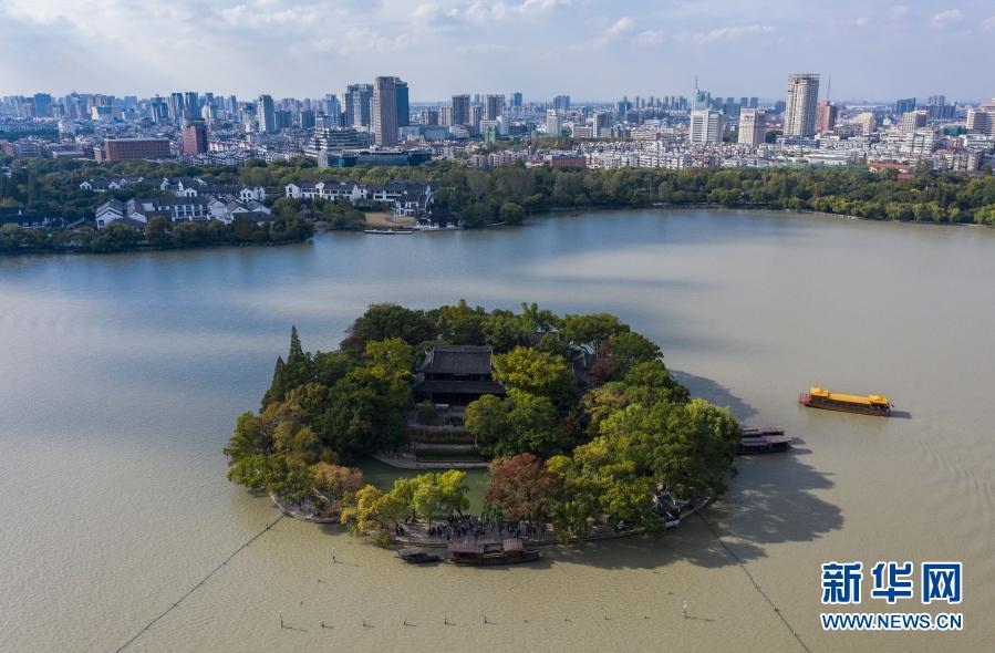 嘉興南湖湖心島(2020年10月27日攝,無(wú)人機(jī)照片)。新華社記者 徐昱 攝