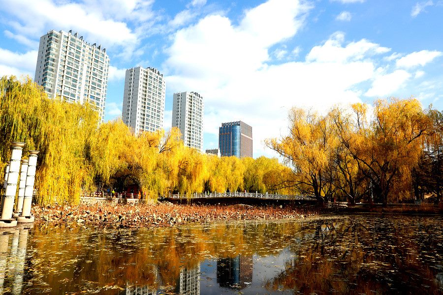 深秋時節(jié),位于呼和浩特市烏蘭察布西路南側(cè)的滿都海公園,秋色浸染,滿目金黃。