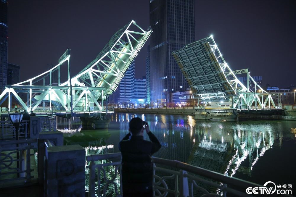 央視網(wǎng)消息:3月19日凌晨,天津解放橋進(jìn)行了全面檢修后的首次開啟調(diào)試工作。在此次調(diào)試中,橋體以最大角度進(jìn)行開啟,以此檢驗(yàn)各項(xiàng)功能的完善及安全。視覺(jué)中國(guó)