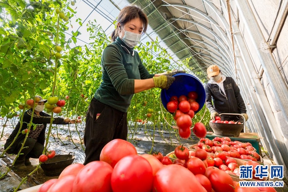 11月17日,農(nóng)民在呼和浩特市玉泉區(qū)現(xiàn)代農(nóng)業(yè)示范園采收西紅柿。新華網(wǎng)發(fā)(丁根厚攝) -